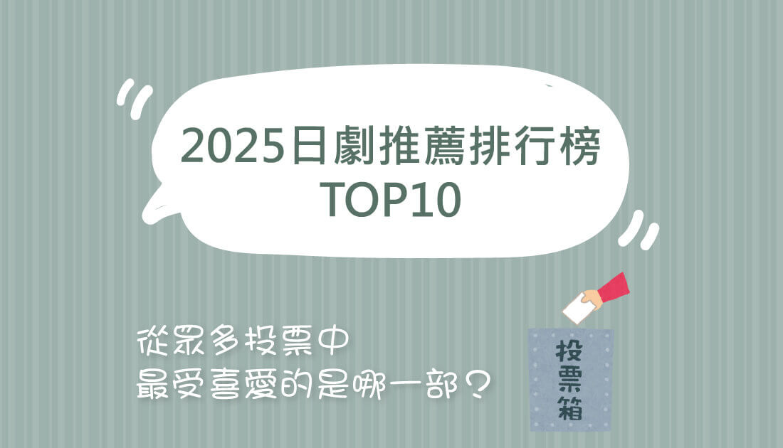 接近年末又到了回顧整年度日劇表現的時候,今年一樣有在社群上發起調查2025日劇推薦的問卷,本次日劇大賞總共收到 102 個回答,非常感謝大家依然願意參與,留下寶貴的意見。